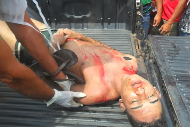 Além dos cortes, Simplício também tinha uma grande perfuração na barriga